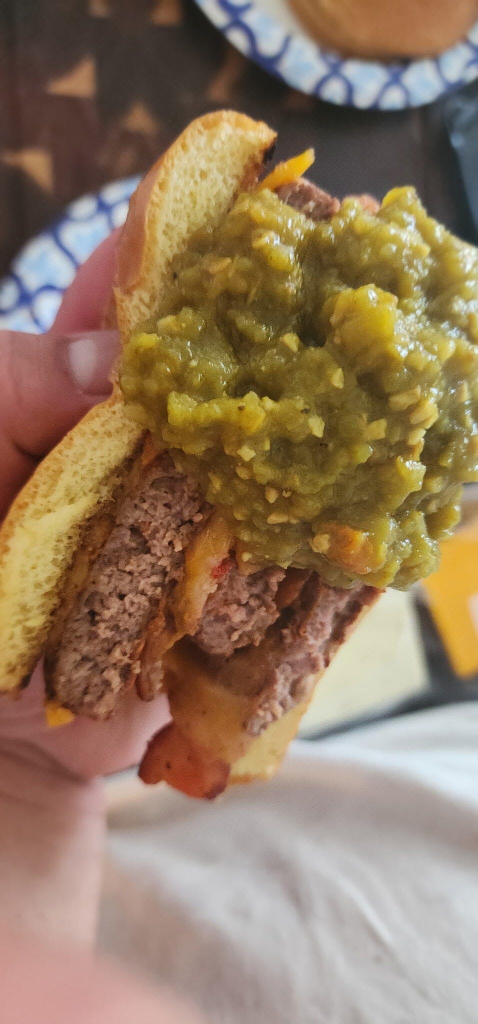 There’s a rare kind of magic in pouring both red and green chili over a triple cheeseburger. The first bite isn’t just flavor, it’s pure truth. The red runs deep and smoky, the green bright and alive, and together they don’t just sit on the meat, they transform it.