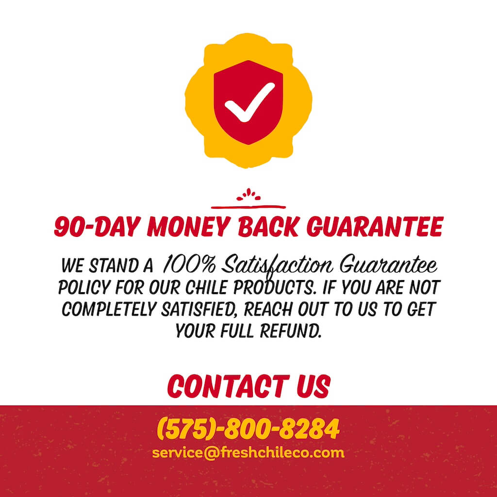 We stand by a 100% Satisfaction Guarantee Policy for our chile products. If you are not completely satisfied, reach out to us to get your full refund.