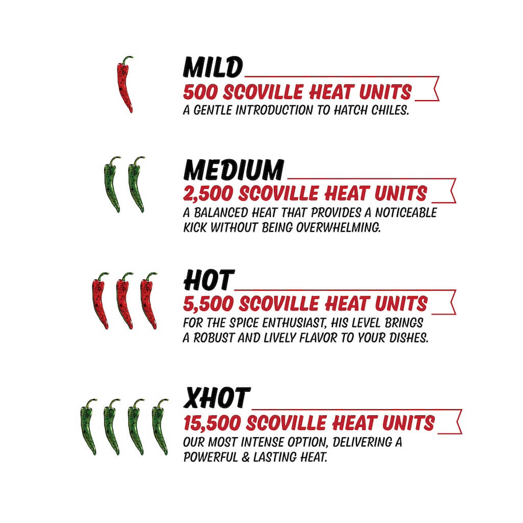 Our Hatch chiles come in four distinct heat levels to cater to every palate:
