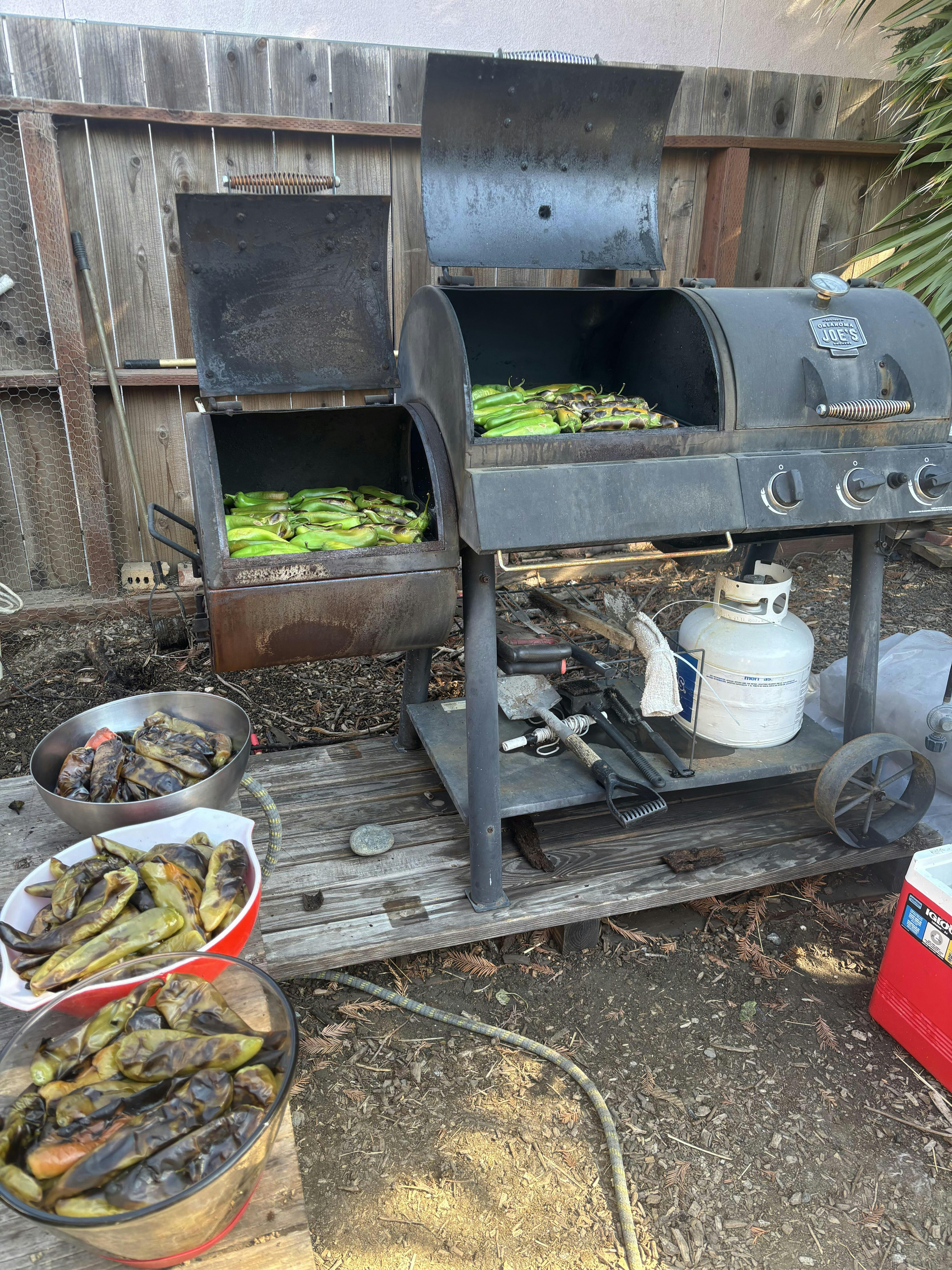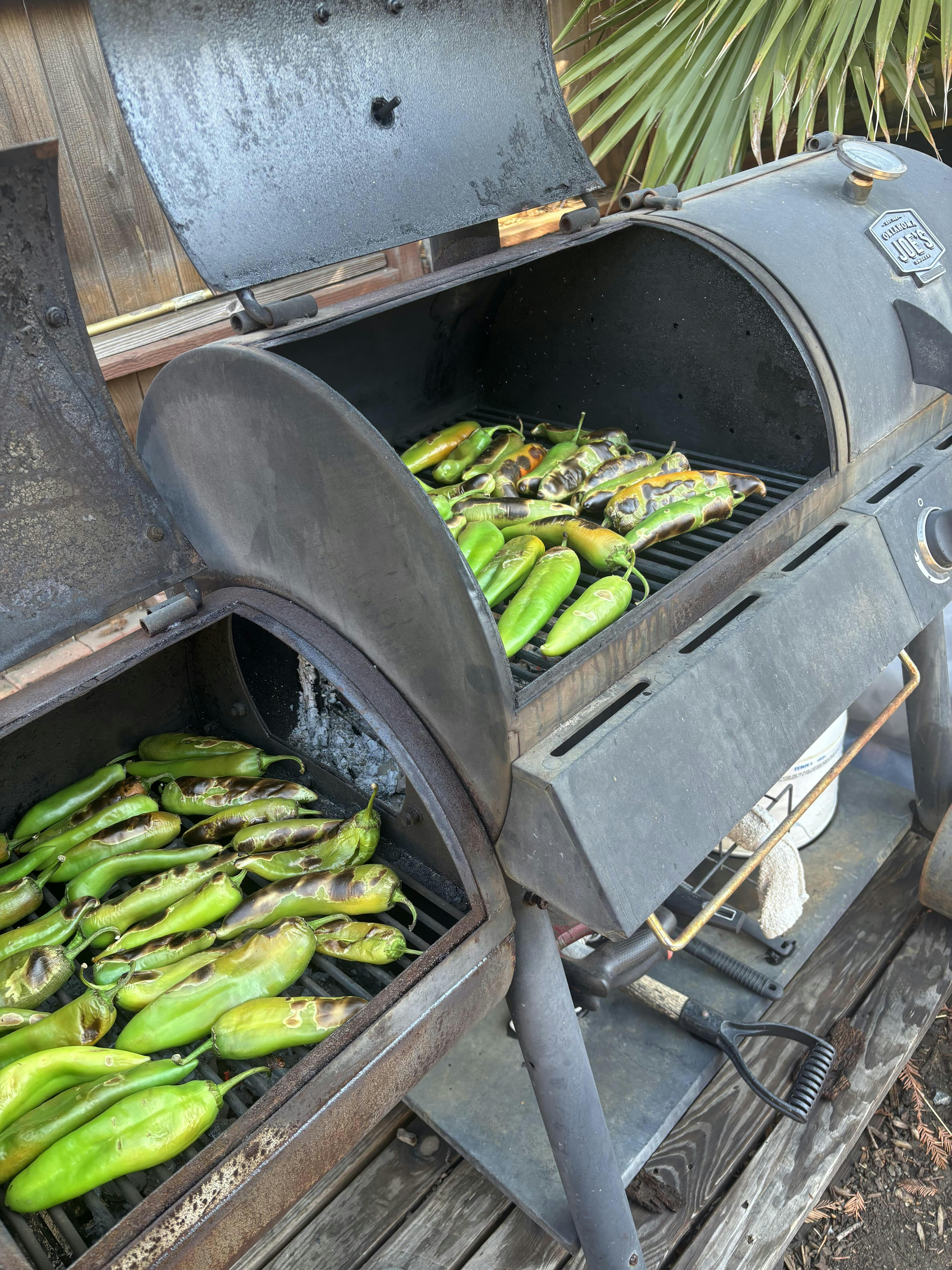- Fresh roasted Hatch Red Chile Peppers on grill