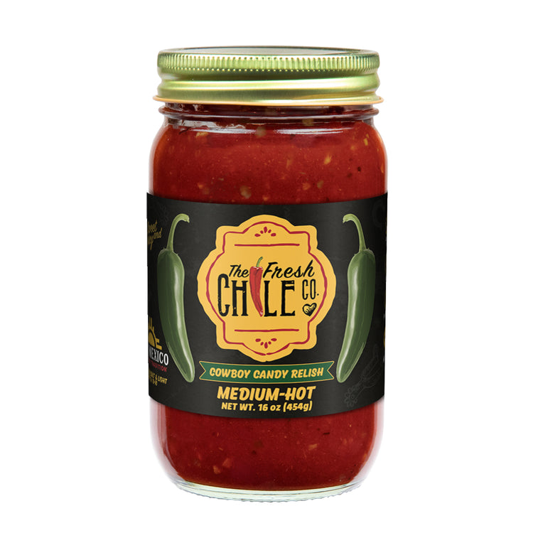 Add a touch of sweet heat to your meals with our Cowboy Candy Relish, a Medium Hot blend of jalapeños, onions, and spices crafted in New Mexico. This relish delivers the perfect mix of sweet and spicy flavor that pairs perfectly with burgers, brats, sandwiches, and smoked meats.