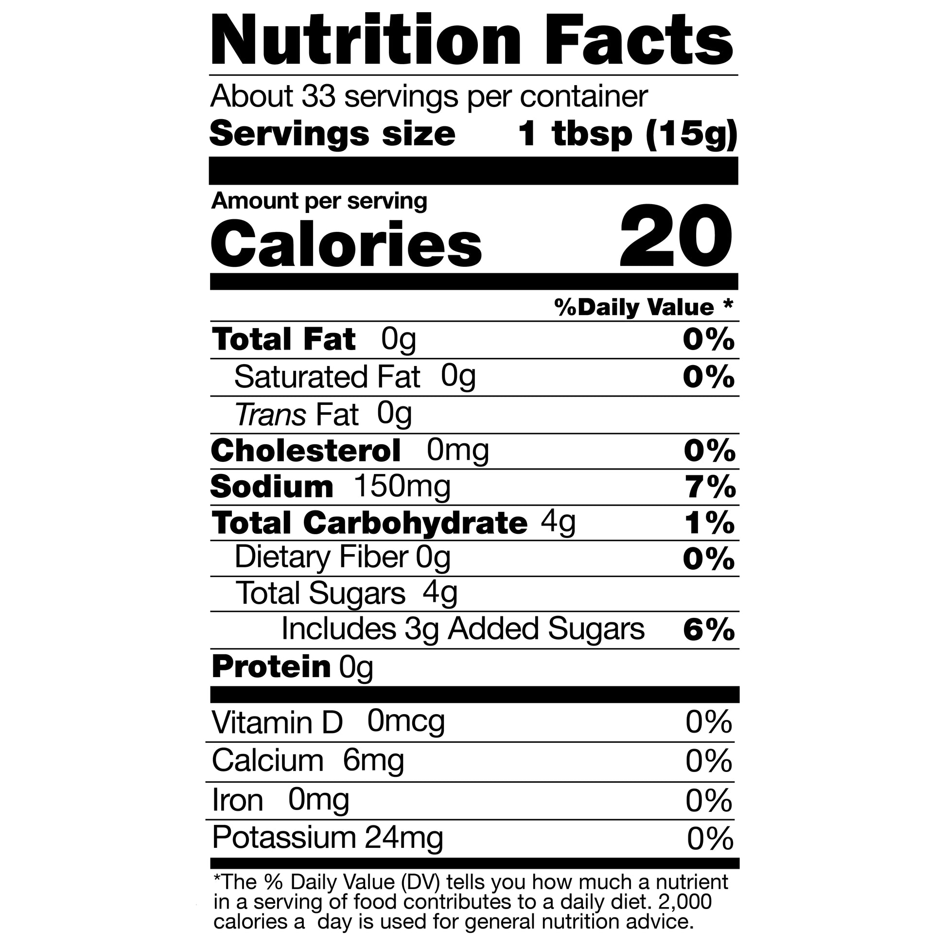 Nutrition: 20 calories per serving, 0g fat, 4g sugar