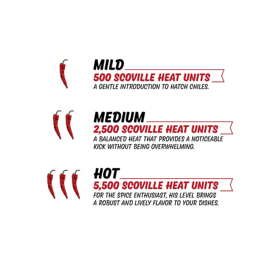 Our Hatch chiles come in four distinct heat levels to cater to every palate:
