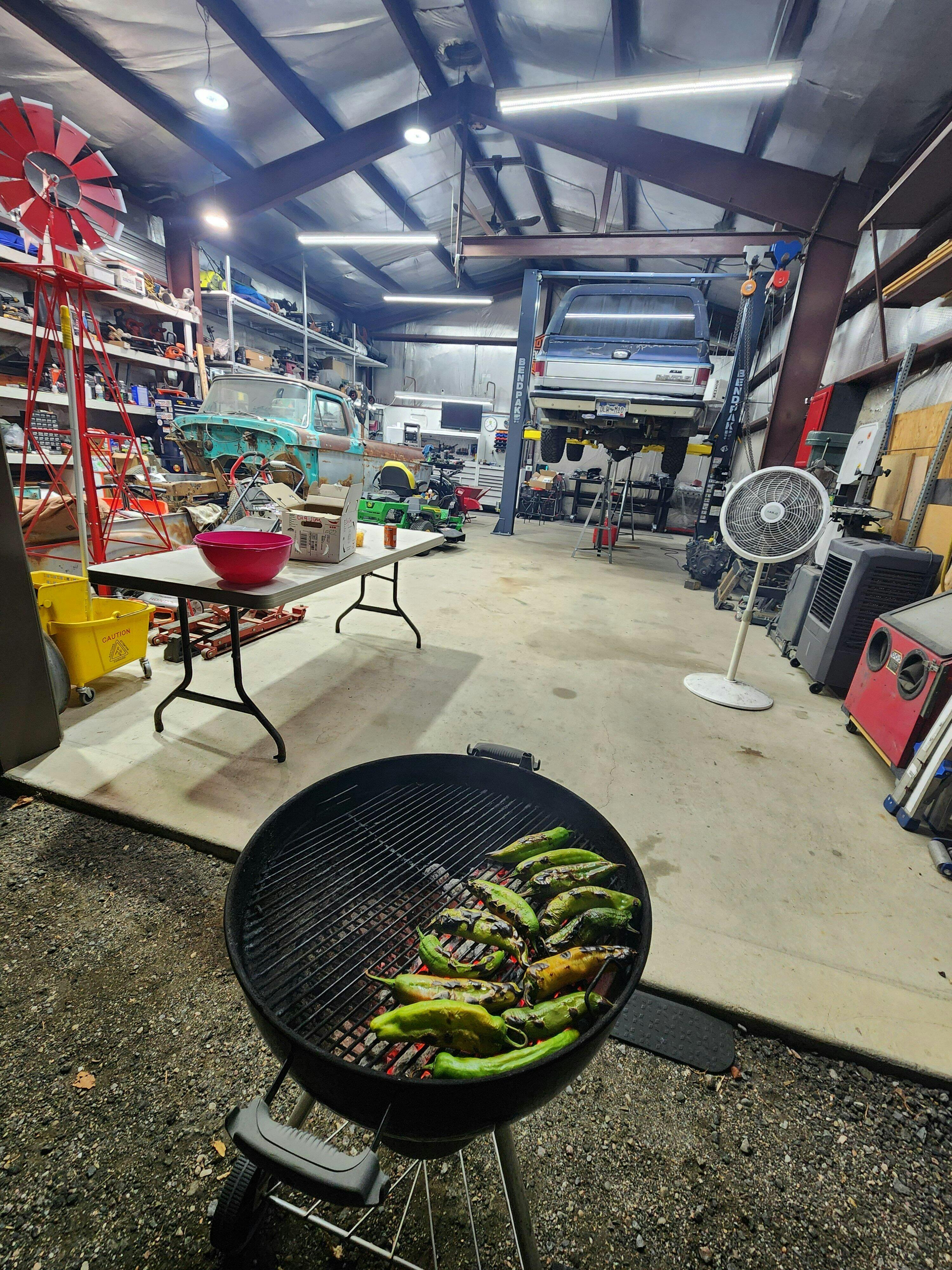 - Place chiles over direct flame or broiler. Rotate until skin is charred.
