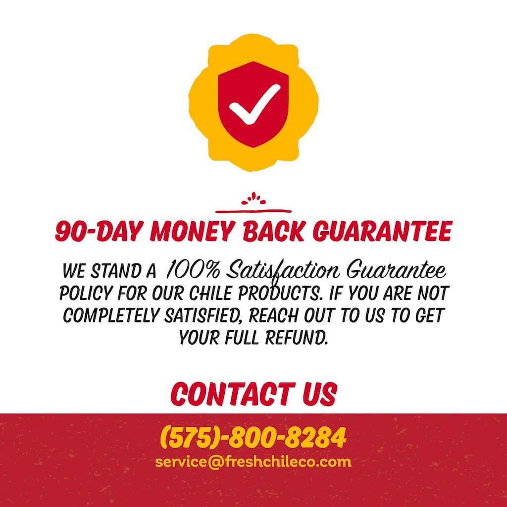 We stand by a 100% Satisfaction Guarantee Policy for our chile products. If you are not completely satisfied, reach out to us to get your full refund.